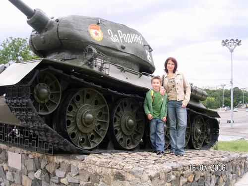 Robert beim Panzer mit Mama